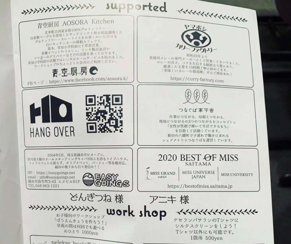 草加を代表する2ピースアコースティックーユニットのKeseran Pasaran.と草加の飲食店6店舗様達が一緒になって作ったイベント「草苑」のサポートをさせていただきました。(8/25開催) 当日は音楽で溢れる街になってほしい、鼻歌人口日本一のごきげんな都市にしたい!そんな想いからから沢山の人が参加していただき、◯(えん)になって宴(えん)になって縁(えん)になる題して「草苑」(そうえん)の名前にぴったりなイベントとなりました^^ 音楽都市を宣言している草加がもっともっと活気溢れるといいですね^^